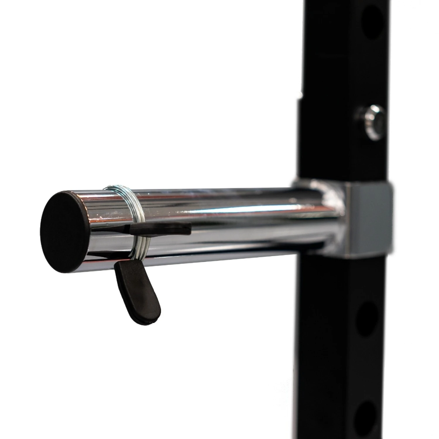 La Power Cage a été conçue pour effectuer des entraînements de poids libres et fonctionnels dans un environnement sécurisé grâce à sa construction et aux barres de sécurité latérales ou aux assistants. De plus, elle permet de stocker vos disques grâce aux supports intégrés.