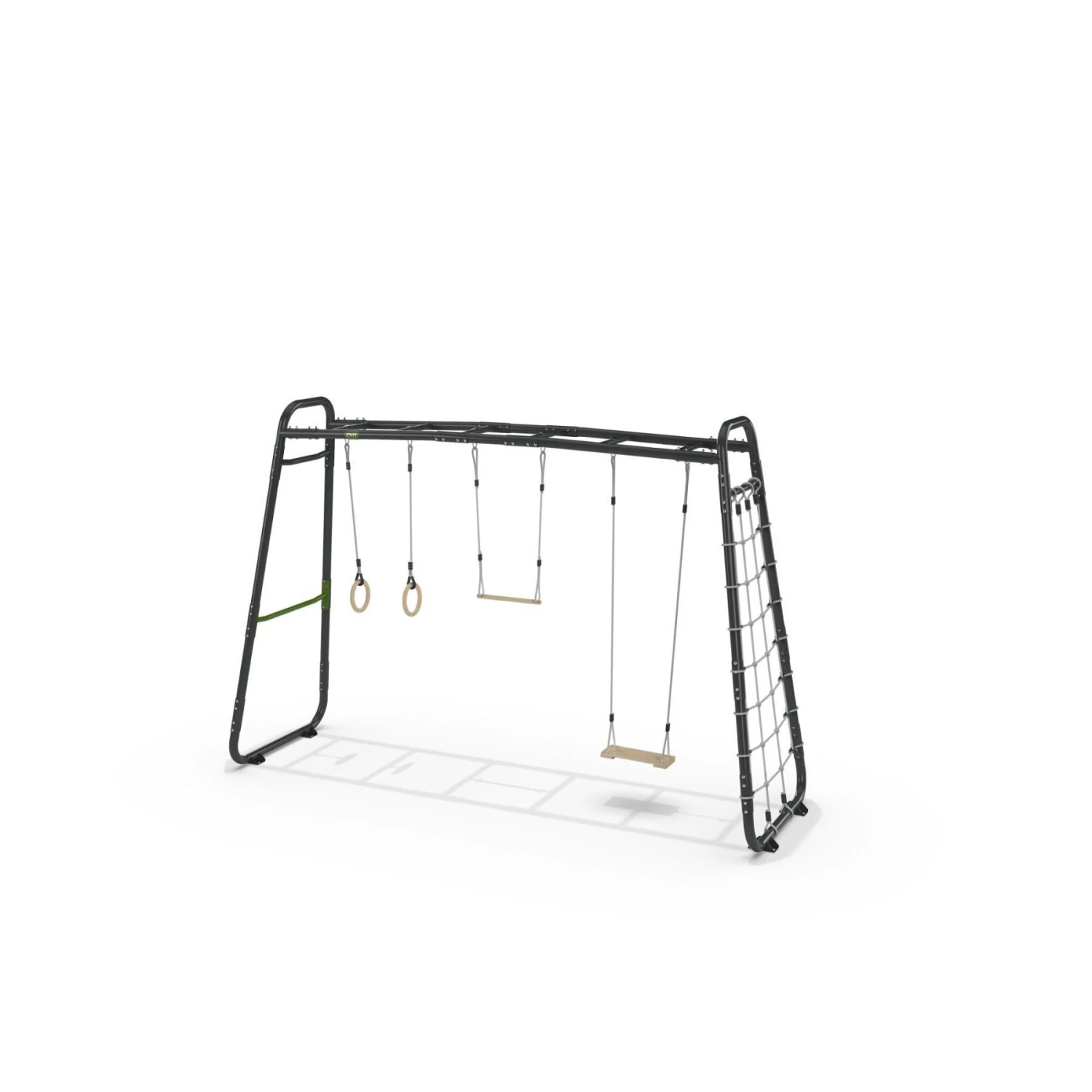 L’EXIT GetSet MB310 est une structure de jeux de plein air de presque quatre mètres. Les accessoires suivants sont inclus : barre fixe, anneaux de gymnastique en bois, trapèze, balançoire et filet d’escalade. Cette monkeybar est multifonctionnelle et offre de l’amusement et du défi aux enfants dès trois ans, dans ton propre jardin.