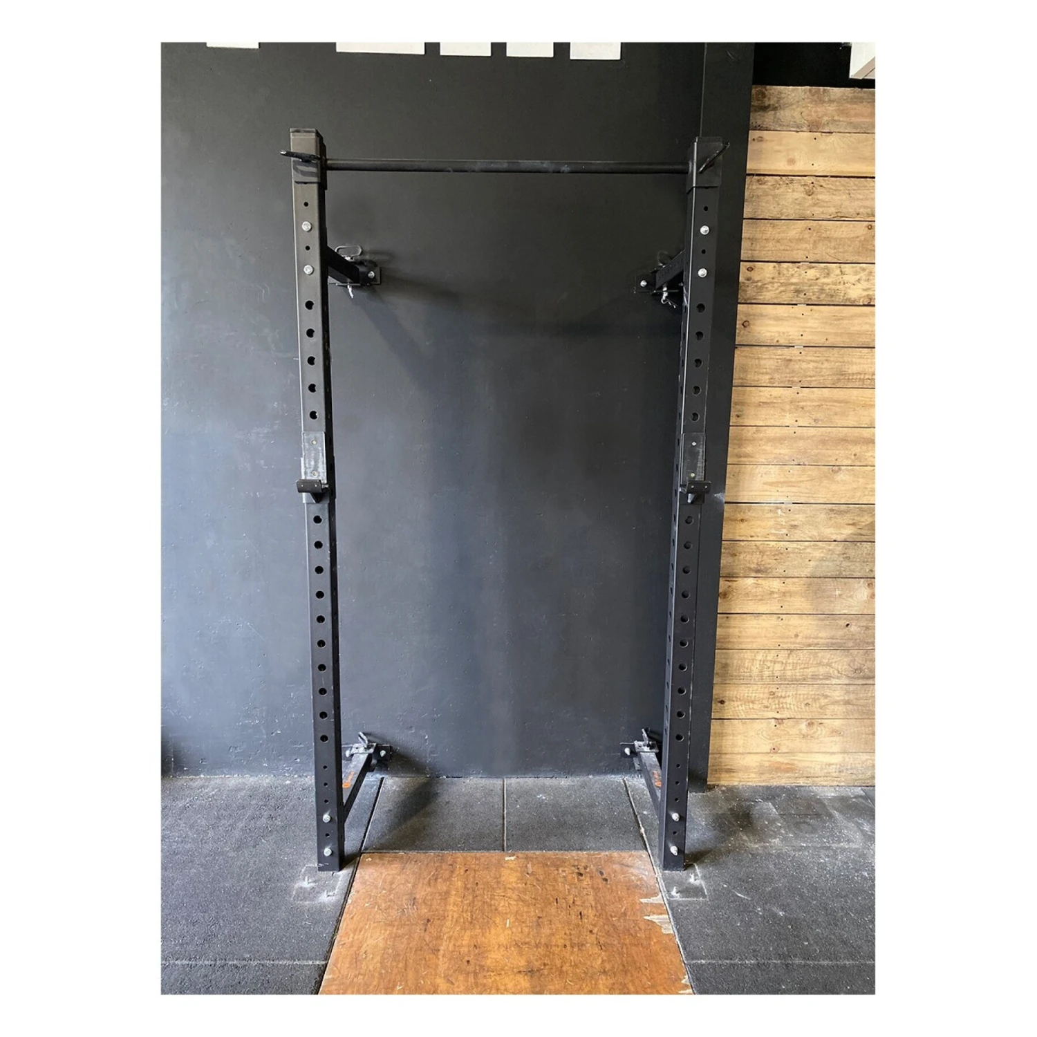 Cette cage murale pliable vous permettra de gagner en place dans votre salle professionnelle, ou dans votre home gym. Elle vous permettra de travailler tous vos exercices de musculation habituels (squat, développé couché, push press, etc). La barre de traction offre également la possibilité de travailler au poids de corps.