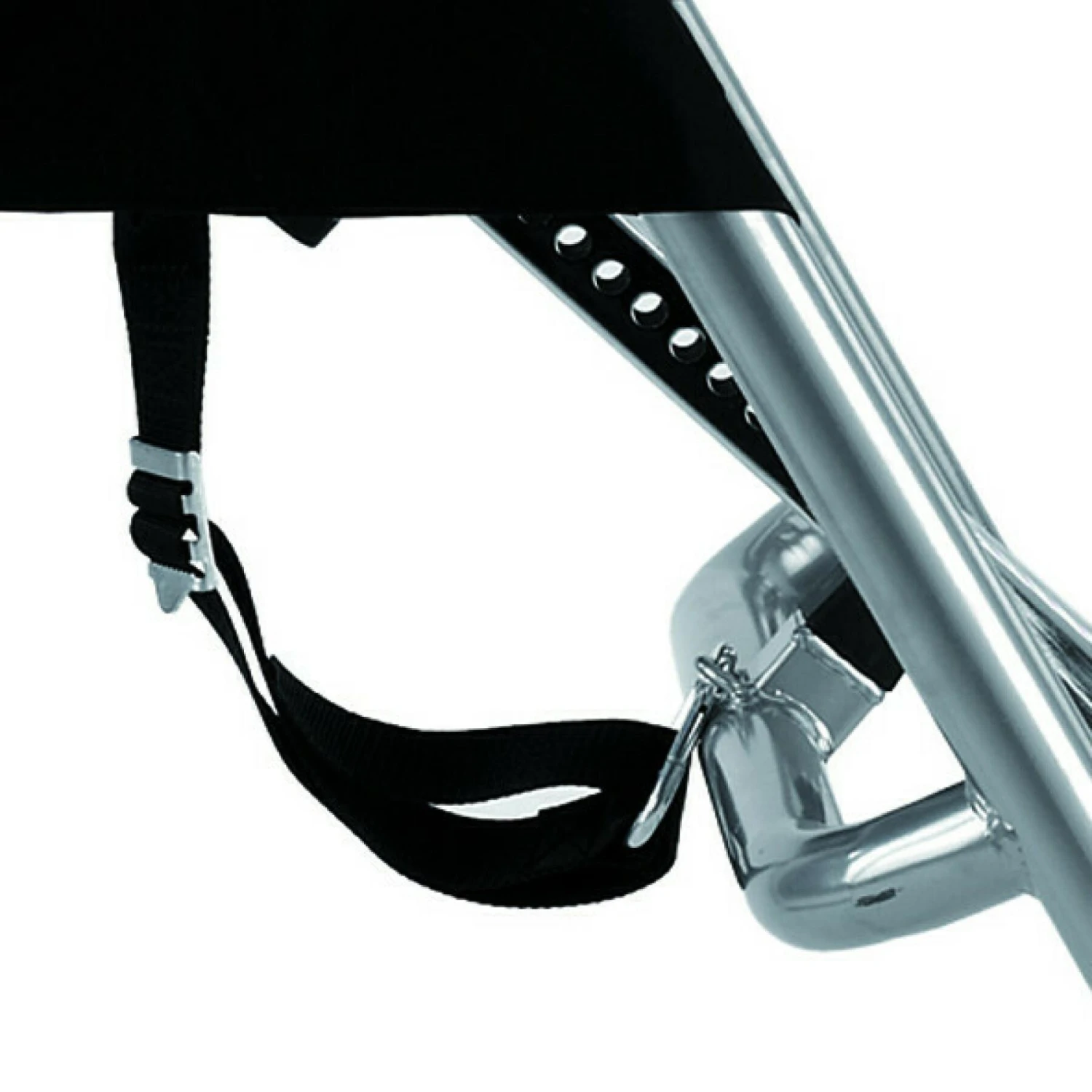 Avec inclinaison verticale maximale de 92º. Le dossier peut être aisément incliné. Comprend une courroie réglable en longueur pour bloquer la rotation du dossier et pour régler l’inclinaison souhaitée. Repose-pieds confortables repose-pieds avec coussins en mousse. Pliable