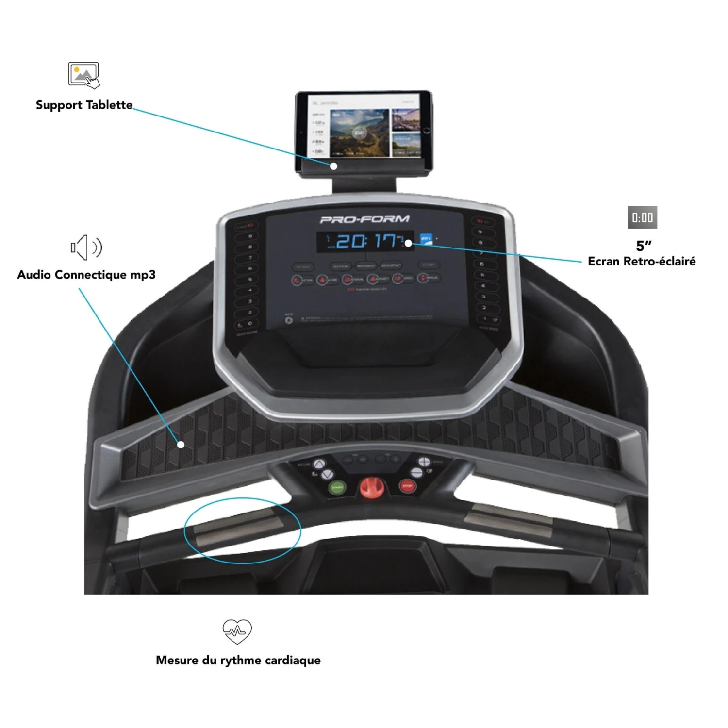 24 programmes intégrés pour un entraînement ciblé et performance variant la vitesse et l’inclinaison