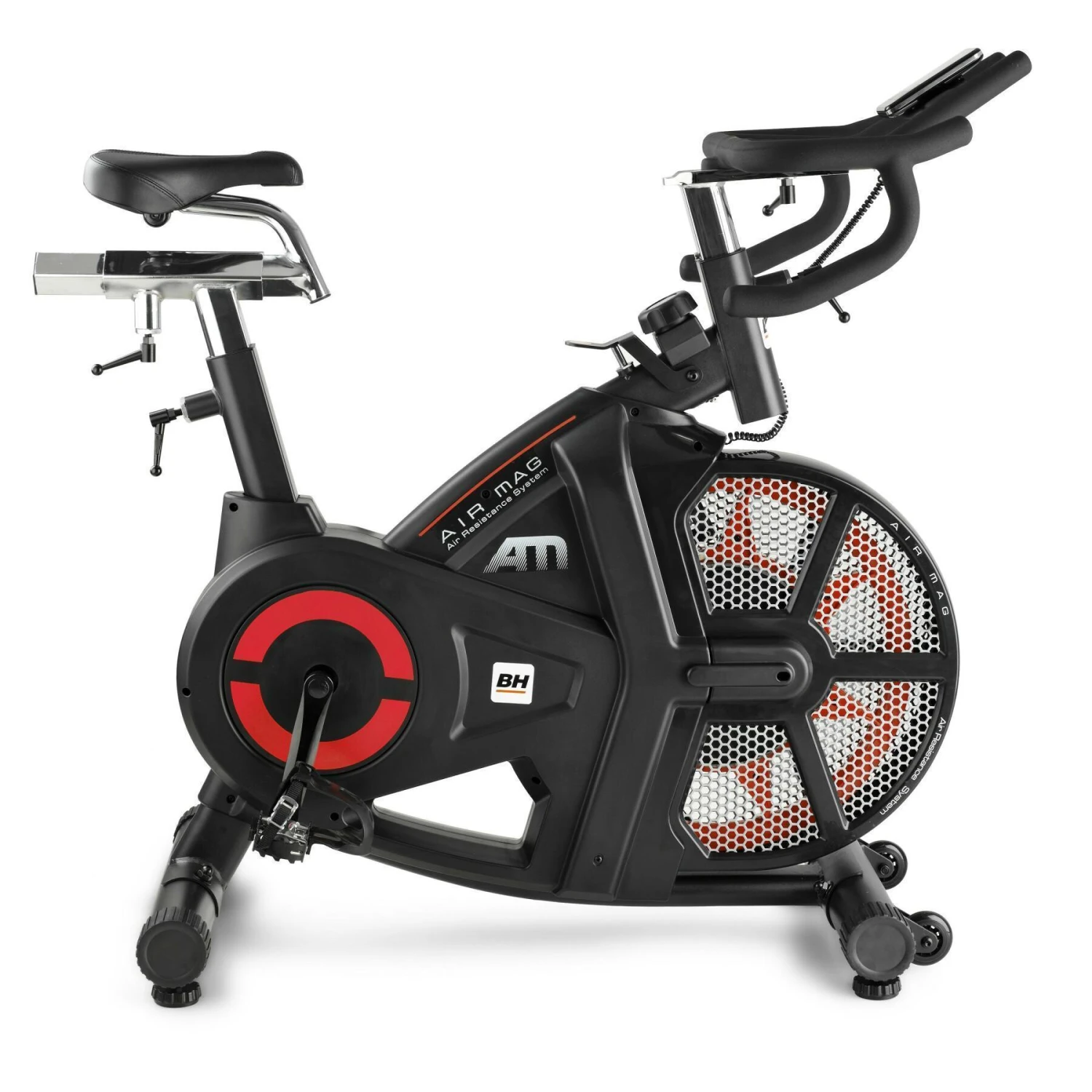 Vélo de biking Bh Fitness Air Mag Mannuel, possibilité d’ajustement du guidon et de la selle, pédales mixtes silencieuses, moniteurs électriques LCD.